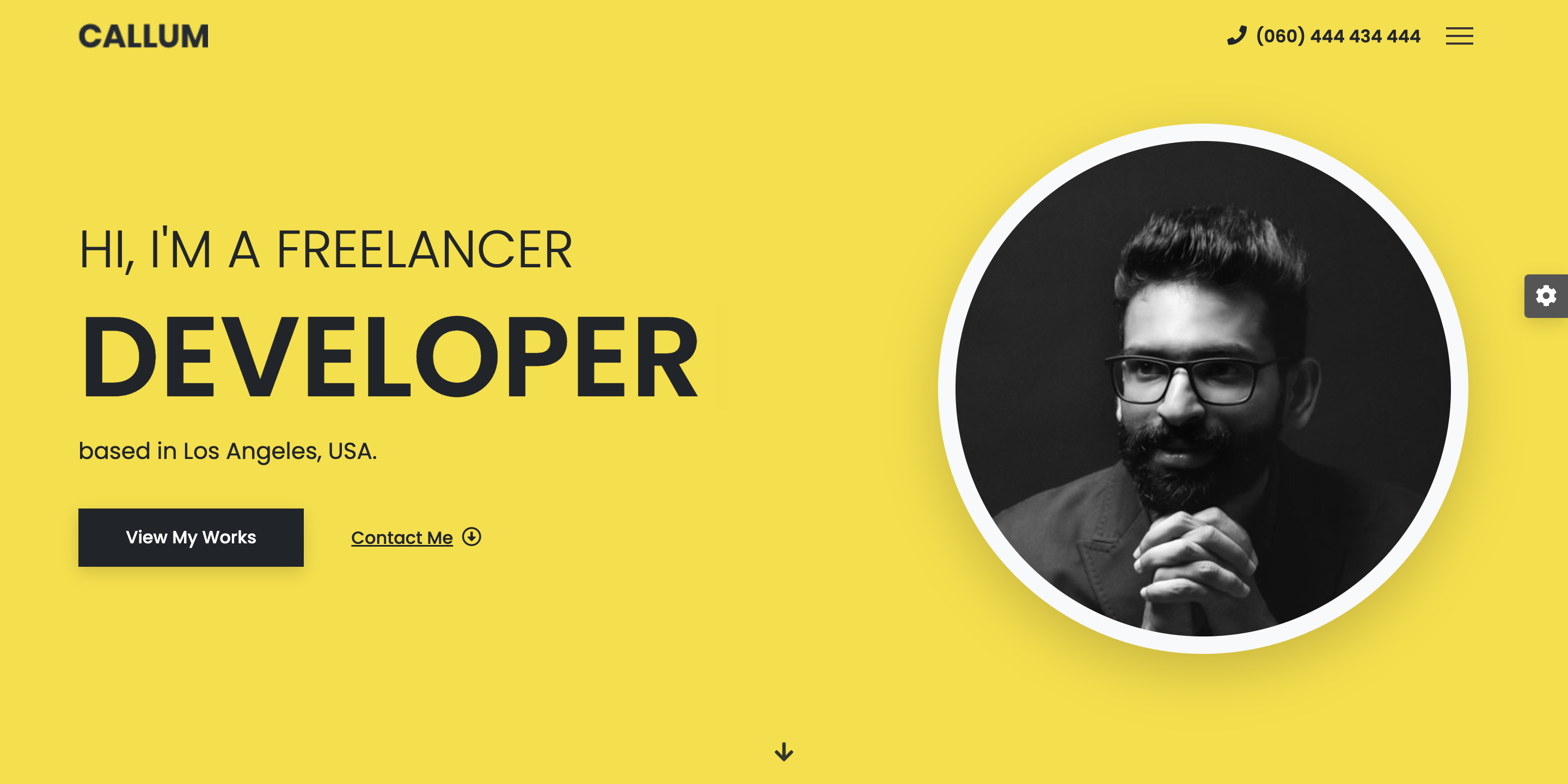 Callum is a creative one-page React template designed for personal portfolio websites.